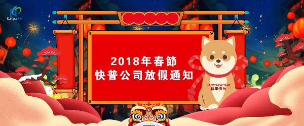 2018年春節(jié)來臨之際,依據(jù)《國務(wù)院辦公廳關(guān)于2018年部分節(jié)假日安排的通知》以及公司福利制度,現(xiàn)將快普公司2018年春節(jié)放假時間公布,我們將合理安排相關(guān)的準(zhǔn)備工作、值班事宜,請廣大客戶及合作伙伴知悉!