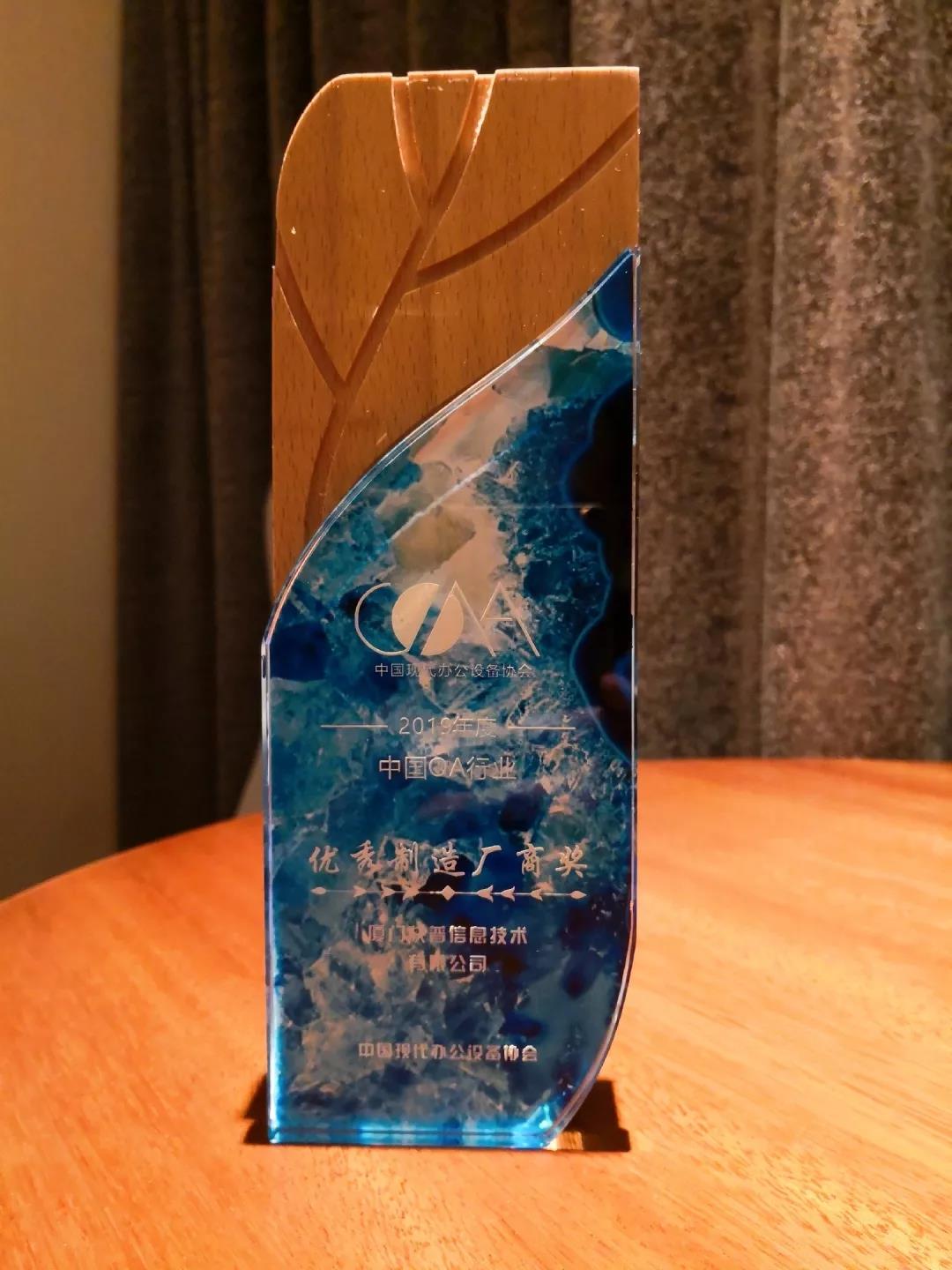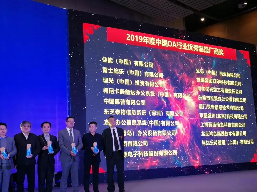 今年年會(huì)上,快普與佳能、施樂(lè)、理光、東芝、京瓷等國(guó)際知名品牌廠(chǎng)商一同獲得“2019年度中國(guó)OA行業(yè)優(yōu)秀制造廠(chǎng)商獎(jiǎng)”的榮譽(yù)!