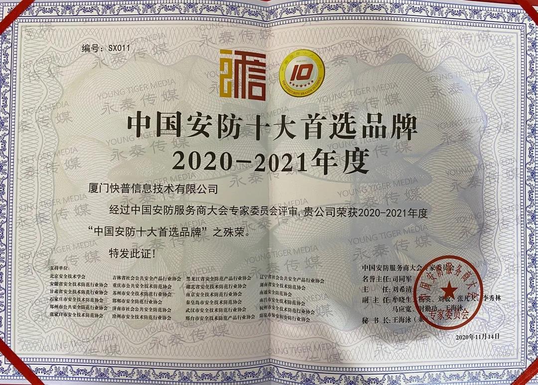 此次峰會,快普以先進的產(chǎn)品理念和優(yōu)秀的市場服務獲得業(yè)界的一致好評,并榮獲“中國安防十大品牌”,感恩安防行業(yè)客戶的支持,快普將堅定使命,持續(xù)為新基建企業(yè)提供強有力的信息化管理支持。
