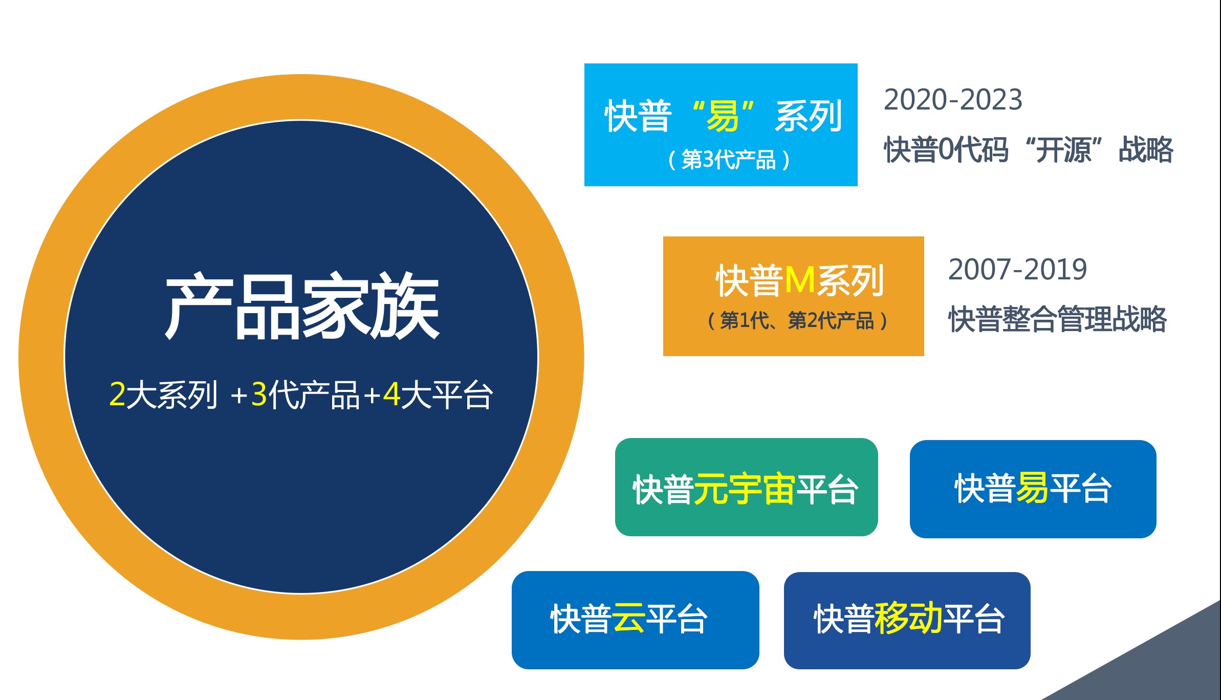 快普董事長(zhǎng)溫祝平介紹說(shuō):從2016年起,快普率先開(kāi)啟了零代碼平臺(tái)戰(zhàn)略,先后推出了快普云平臺(tái)、快普移動(dòng)平臺(tái)、快普易平臺(tái)、快普元宇宙平臺(tái)以及快普“易”系列6款完全零代碼配置的ERP產(chǎn)品。