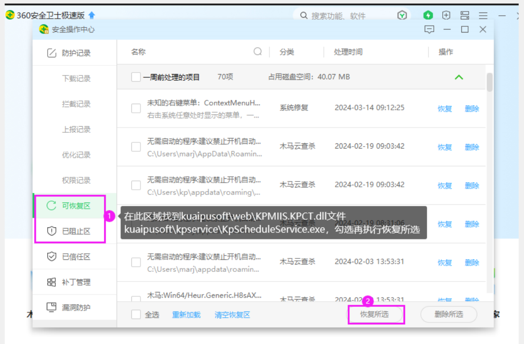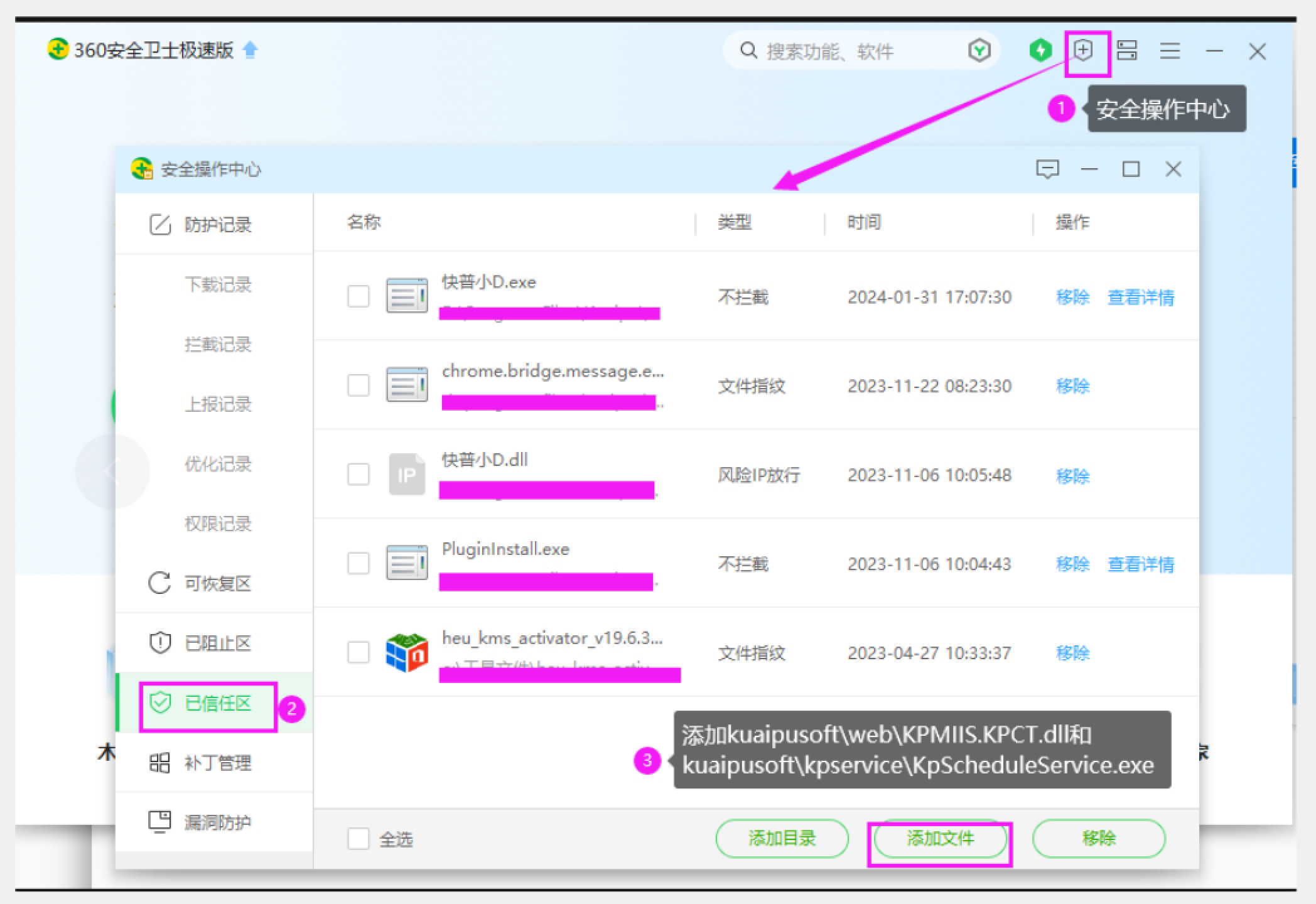 沒加入信任就被360隔離的,上面截圖那幾個文件可在隔離區(qū)恢復(fù),恢復(fù)后按上面方法加入信任: