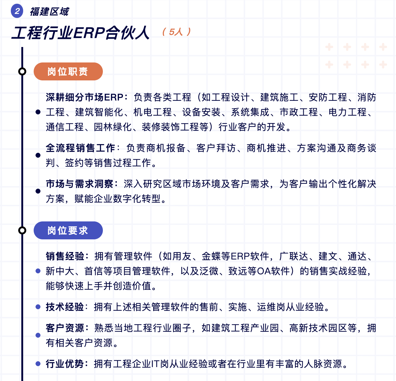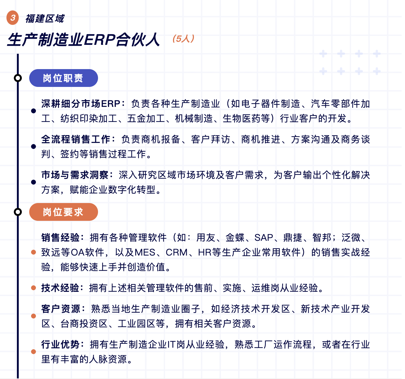 當(dāng)前數(shù)字化轉(zhuǎn)型市場巨大,為進(jìn)一步推動中小企業(yè)數(shù)字化轉(zhuǎn)型,現(xiàn)將福建區(qū)域作為2025年首批試點城市,面向福州、廈門、泉州、漳州、龍巖、三明、南平、寧德等地招募城市合伙人。作為快普全國第一批試點城市合伙人,將享受到最優(yōu)厚的政策扶持與廣闊的發(fā)展舞臺。